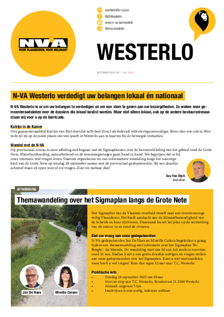 N-VA Westerlo verdedigt uw belangen lokaal én nationaal